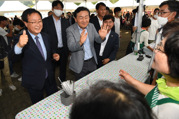 -1일 김관영 전북도지사 축제현장 방문에 환담, 노르딕워킹대회 인사