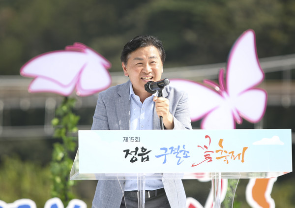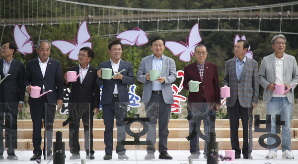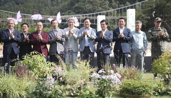 [투데이안] 1일 정읍 구절초 지방공원에서 열린 제15회 정읍 구절초 꽃축제에 김관영 도지사와 이학수 정읍시장, 윤준병 국회의원 및 참석자들이 전북제1호 지방정원 선포식을 갖고 기념촬영을 하고 있다