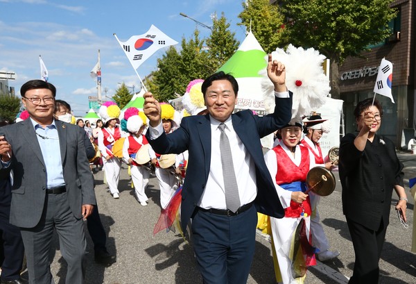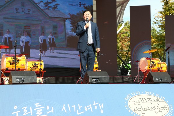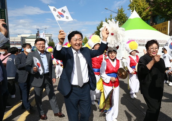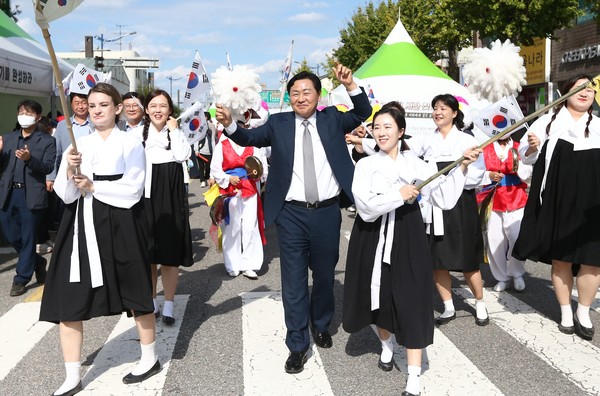 [투데이안] 8일 과거로의 시간여행을 떠날수 있는 군산시간여행축제에 김관영도지사, 도의원, 군산부시장 등 참석자들이 길거리 퍼레이드를 하고 있다.