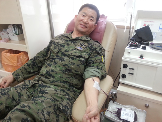 헌혈을 통한 봉사에 참여하고 있는 노규동 원사는 지역사회를 사랑하는 봉사에도 남들 못지않은 열정으로 참여하고 있다.