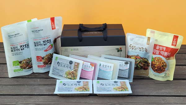추억의 식품 ‘묵’을 가공해 만든 도토리묵 잡채와 올방개떡볶이는 특제 소스로 젊은 세대들의 입맛까지 사로잡은 즉석 밀키트 제품.(묵선물세트 21,000원~47,000원/ 주문 636-6111)