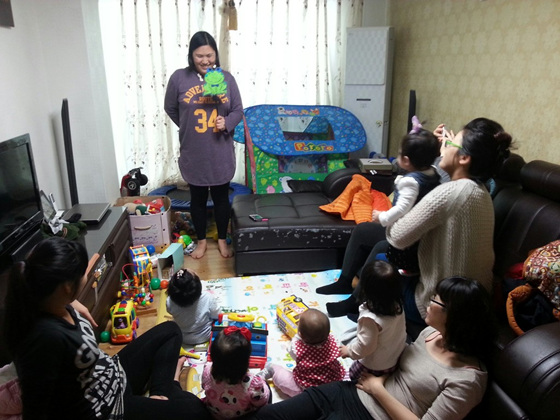 익산시 모현동에 한 가정집에서 돌이 지난 아이들과 엄마들까지 10여명이 옹기종기 모여 재미난 구연동화를 듣고 있다.