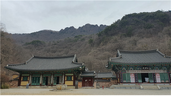 화재로 인해 대웅전은 불타 없어지고 그 자리에 임시 단층조립식건물이 초라하게 방문객을 맞고 있었다.