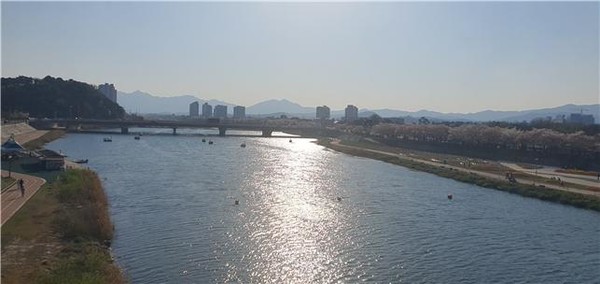 뷰가 참 아름답다. 필자가 알기로는 20년 전 부터 천변의 벚꽃은 유명세를 타기 시작한 것 같다. 이쯤 어디엔가 황희의 초막 ‘일재’가 있었을 것 같다.