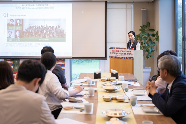 소리축제 조직위원회는 4일 완산구 효자동 전주궁에서 2023 전주세계소리축제 프로그램 발표회및 프레스 컨퍼런스를 개최하고 준비에 박차를 가하고 있다고 밝혔다.