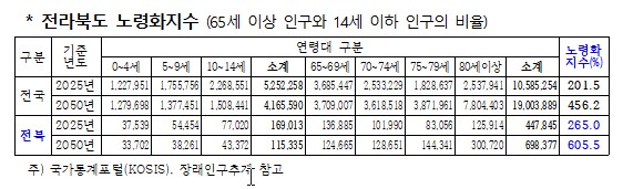 특히 고령친화산업 시장 규모가 확대되는 추세인 데다 전라북도의 노령화지수도 오는 2025년 265.0%에서 2050년 605.5%로 약 2배 이상 증가할 것으로 전망되는 상황이어서 고령 친화·사회 서비스 산업 개발은 일자리 창출 효과 등 다른 산업보다 월등히 높을 것으로 기대되는 특례 중 하나이다.