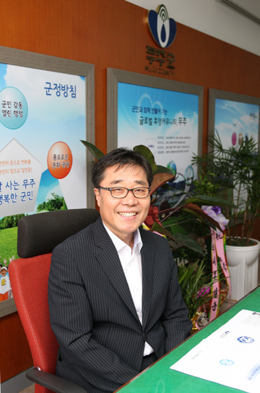 “무주군의 비전이 국제휴양도시로 명확한 만큼 제 역할도 분명하다는 생각에 신바람 납니다. 직원들이 기운찬 에너지를 주고받으며 출근하고 싶은 일터를 만들고 우리 군민들이 잘 살고 행복할 수 있다는 희망을 키워나갈 수 있도록 제 가진 모든 역량을 쏟을 것입니다.”