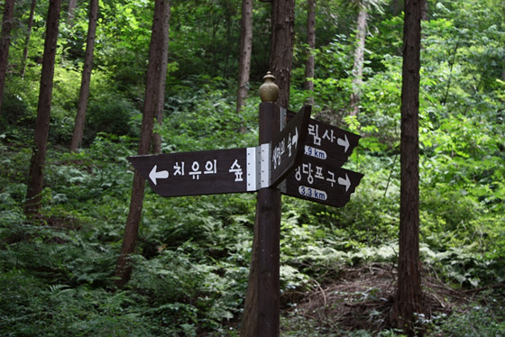 성긴 비가 내린 뒤 폭신해진 흙길 산책로를 따라 맨발로 발도장을 찍듯 걸어보니 향긋한 편백 향이 발바닥부터 머리끝까지 스민다.