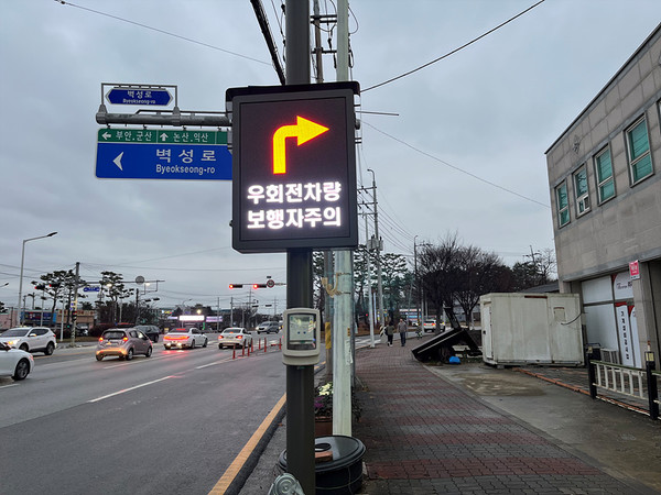 시는 김제경찰서가 제공한 교통사고 다발구간 7개소에 스마트 전광판을 설치해 서비스를 시행하고 있다.