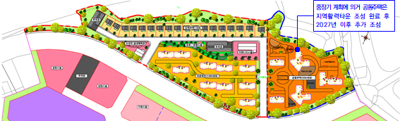 지역활력타운 부지에 타운하우스 80세대(4층이하 10동), 단독주택 18세대, 커뮤니티센터 건립 및 근린생활형 소규모실내체육관, 기반시설(도로, 공원, 주차장) 등을 조성해 통합형(일자리연계 및 은퇴자마을)으로 수요 맞춤형 주거제공을 통한 건강한 삶과 편안한 쉼의 공간을 조성하게 된다.