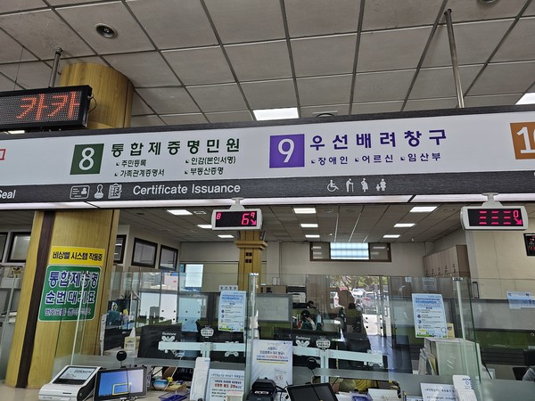 인‧허가 복합민원의 처리를 위해 여러 부서를 방문할 필요가 없도록 1층 민원실 창구에 건축민원, 개발행위, 농지전용, 산지전용, 측량업무 담당자가 한곳에 모여있는 원스톱 민원창구를 운영한다.