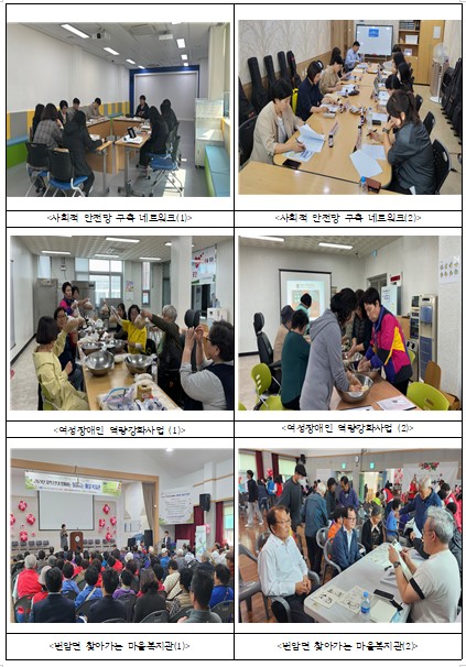 현재 분기별로 1회씩 장수군의 사회복지 유관기관 담당자들이 모여 각 기관에서 진행되는 사업을 공유하고, 장수군의 복지 사각지대 당사자 발굴, 중복 서비스 방지를 위한 방안을 마련하기 위한 회의를 진행하고 있고 2024년 상반기 총 2회기에 걸쳐 추진됐다. 사회적안전망 구축을 위한 네트워크 회의는 하반기에도 계속적으로 추진할 예정이다.