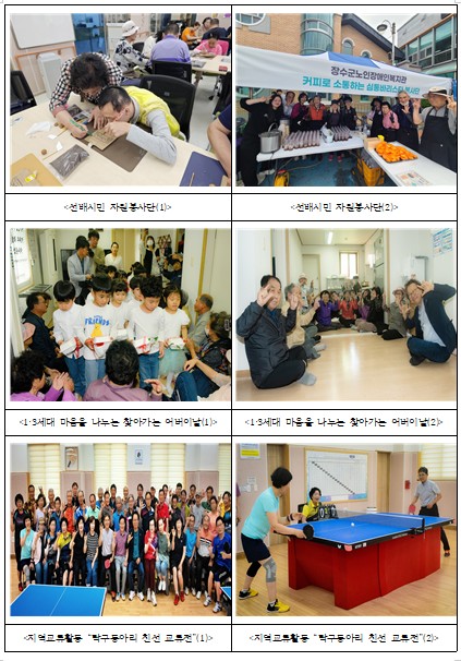 당구, 탁구, 서예, 공예, 바리스타 등 어르신들이 복지관을 이용하며 익힌 재능을 지역의 1·3세대 교류 활동을 통해 아이들에게는 새로운 경험과 지식의 습득을, 어르신들에게는 사회적 역할을 주어 보람을 느끼고 자아 존중감이 향상될 수 있도록 지원할 계획이다.