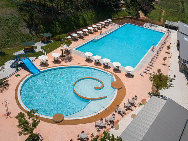 상하농원은 여름이면 50m 대형 풀장과 유아 온수풀, 선베드와 파라솔을 갖춘 수영장을 운영한다.