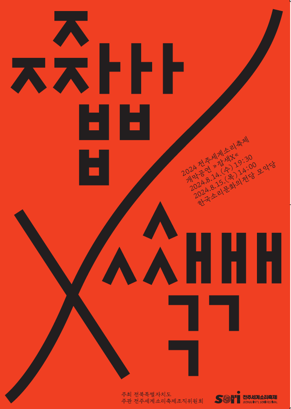 [투데이안] 2024 전주세계소리축제(조직위원장 이왕준, 이하 소리축제)가 8월 14일 개막공연 <잡색X>를 시작으로 8월 18일까지 한국소리문화의전당과 전북특별자치도 14개 시군에서 펼쳐진다.