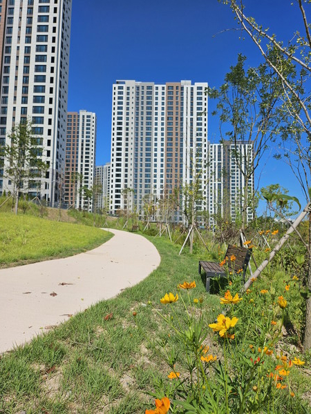 기존 산지와 구릉 지형을 활용한 둘레길을 오르내리면 철마다 다른 들꽃이 한들거리고, 매미 소리가 귀뚜라미 소리로 바뀌는 계절의 변화를 가까이에서 느낄 수 있다.