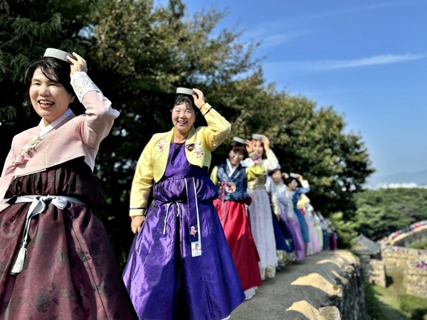 특히 올해는 100여명의 외국인계절근로자도 참여해 눈길을 끌었다. 전국 각지에서 찾은 사진작가들도 가을 정취를 배경으로 아름다운 한복을 입은 참가자 행렬을 담아내기에 바빴다.
