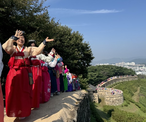 -한복을 차려입은 참가자들의 형형색색 물결이 장관