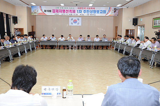 오는 10월 2일부터 6일까지 5일간 벽골제에서 개최되는 ‘제15회 김제지평선축제’의 개막을 23일 앞둔 가운데 김제시는 9일 이건식 김제시장을 비롯한 각 실․과․소, 읍․면․동장 등 50여명이 참석하여 축제 프로그램 준비상황을 점검했다.