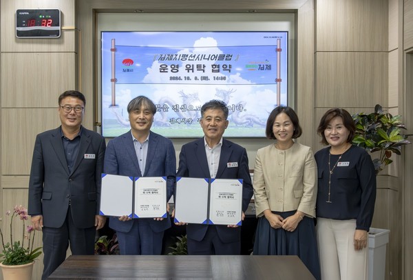 김제지평선시니어클럽 설치에 따라 위탁운영 법인을 공개모집하고 선정심의회를 통해 법인의 공신력, 사업수행능력, 재정능력, 사업단 운영능력 등을 심사해 사단법인 복지마을(대표 장봉석)과 위탁운영 협약을 맺었다.
