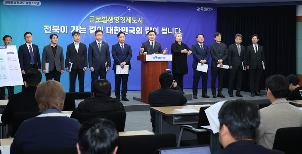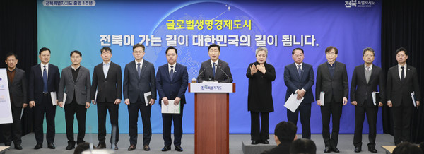 [투데이안] 전북특별자치도 출범 1주년 기념행사에서 김관영 지사는 도민보고를 통해 2024년 12월 27일 전북특별법이 시행되기까지의 노력과 전북의 꿈을 실현하기 위한 5대 핵심산업의 추진상황, 전북자치도의 미래상 등을 설명했다.