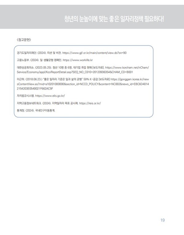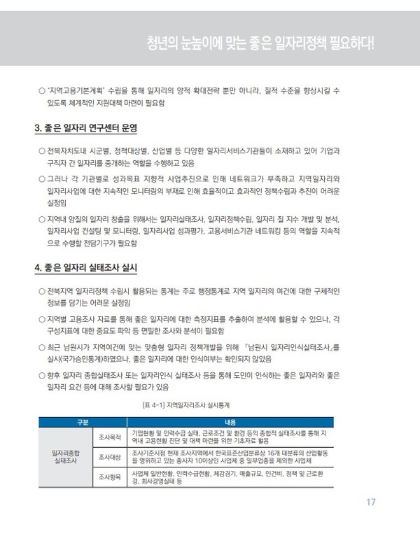 인식하는 좋은 일자리와 요건을 파악하기 위해 ‘일자리 종합실태조사’ 실시가 필요하다.
