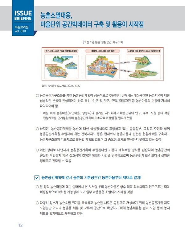 [J think 이슈 브리핑] 지방소멸에 이어 농촌소멸이 주요 이슈로 등장하고 있으나 과소·고령화로 인한 농촌마을 소멸에 대한 사회적 관심과 정부 정책은 여전히 미미한 실정이다.