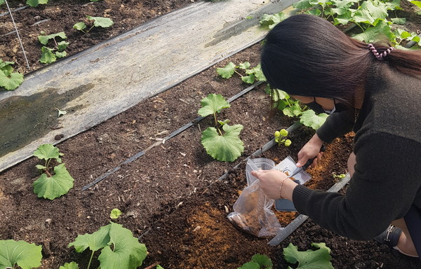 정확한 토양검정을 위해서는 퇴비나 화학비료를 사용하기 전 토양 상태에서 약 15cm 깊이의 흙을 510곳에서 균일하게 채취해 약 500g을 시료봉투에 담아야 한다.