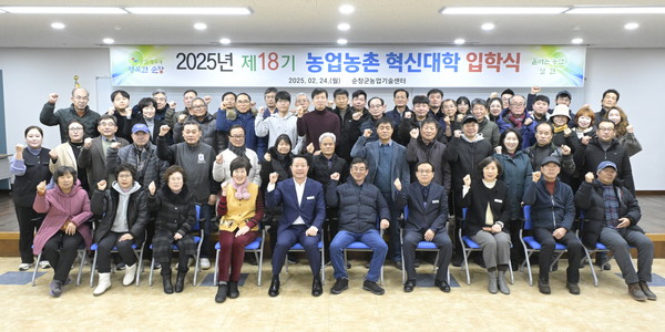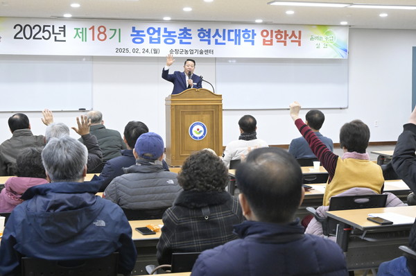 [투데이안] 순창군이 지난 24일 지역 농업의 미래를 이끌어갈 핵심 인재를 양성하기 위한 ‘농업농촌혁신대학’입학식을 갖고 본격적인 교육 과정에 돌입했다.