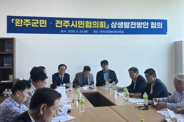 완주군민협의회(공동대표 나유인·성도경)와 전주시민협의회(위원장 박진상)는 23일 완주군 삼례읍 협의회 사무실에서 1차 실무 협의회를 열고, 양측이 제안한 완주·전주 상생발전 방안에 대한 논의를 시작했다.