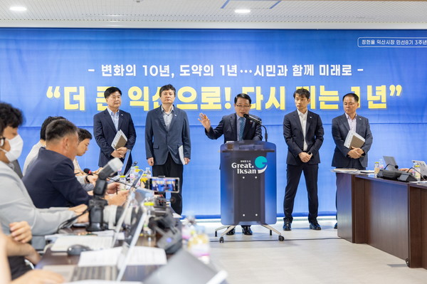 [투데이안] 정헌율 익산시장이 6월 26일 민선8기 3주년을 맞아 브리핑을 열고 “남은 임기를 마지막이 아닌 처음이라는 마음가짐으로 한 순간도 허투루 보내지 않겠다”며 강한 의지를 밝혔다.