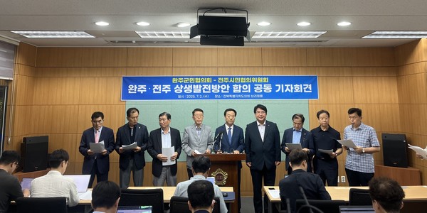 [투데이안] 완주군민협의회(공동대표 나유인·성도경)와 전주시민협의위원회(위원장 박진상)는 7월 2일 전북특별자치도의회 브리핑룸에서 기자회견을 열고, 지난 6월 30일 체결한 ‘완주군민협의회-전주시민협의회 공동 합의서’를 공개했다.