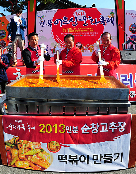 제8회 순창장류축제가 한창인 2일 순창전통고추장민속마을 축제장 부무대에서는 2013인분 초대형 비빔밥 만들기 행사가 펼쳐졌다.