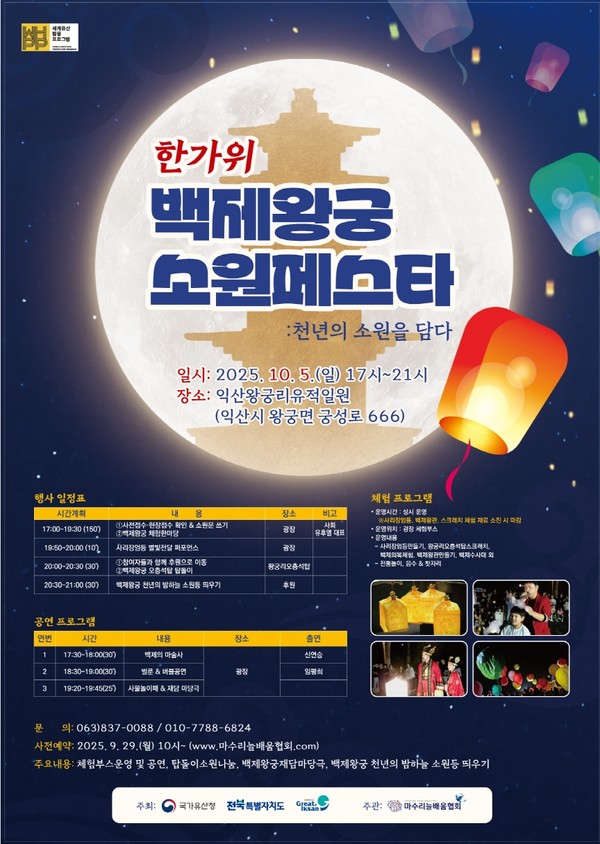 백제왕궁에서는 추석 전날 '한가위 백제왕궁 소원페스타: 천년의 소원을 담다'가 열린다.