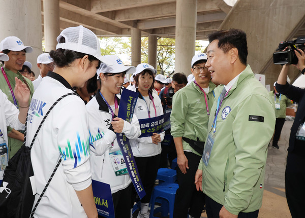 [투데이안] 김관영 전북특별자치도지사가 지난 17일 부산 아시아드주경기장에서 열린 제106회 전국체육대회 개회식에 참석해 전북선수단과 도체육회 임직원들을 직접 만나 격려하고 있다.