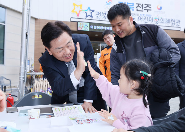 [투데이안] 아동학대예방의 날을 맞아 8일(토) 전북어린이창의체험관에서 열린 제19회 아동학대예방의 날 기념식에 김관영 전북특별자치도지사와 김희수 전북특별자치도의회 부의장 및 관련 기관, 단체 등이 참석한 가운데 아동학대 예방 퍼포먼스를 하고 있다.