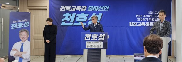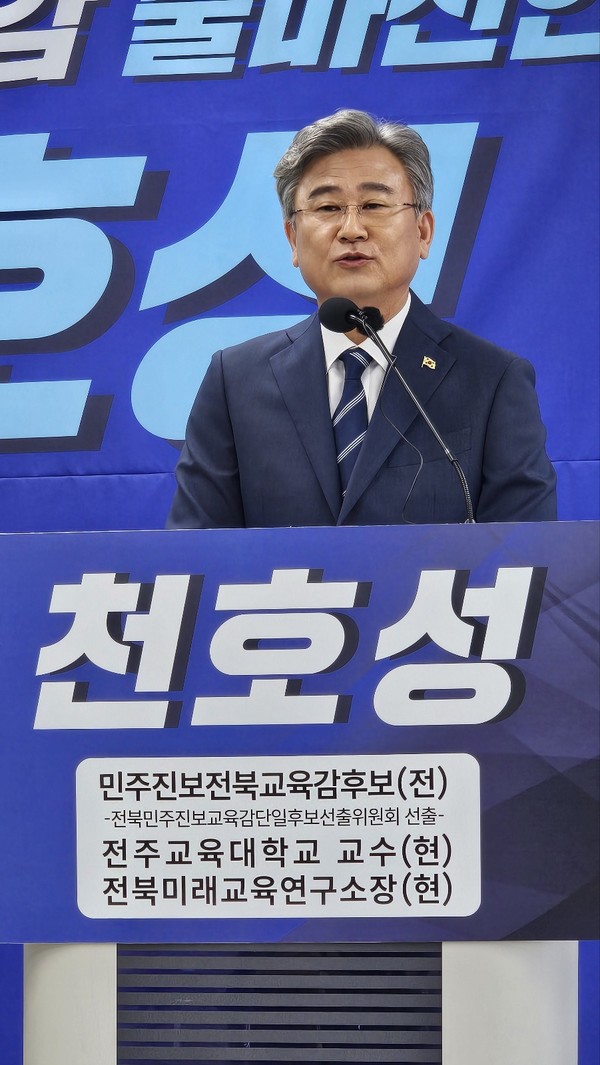 천 교수는 스스로를 “평생을 현장에서 학생을 가르쳤던 교사이자 교사를 길러낸 교육 전문가”라고 소개하며, “지금 전북 교육은 총체적 위기 상황”이라고 진단했다.