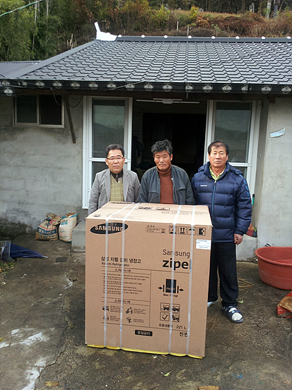 뜻밖에 김치냉장고를 선물 받은 김태기씨는 “해마다 어렵사리 김장을 해도 김치를 저장할 곳이 없어 시어서 먹기 힘들었는데 이번에 도움을 받아 김치를 마음 편히 냉장고에 두고 먹을 수 있게 되었다 ”며 감사한 마음을 전했다.