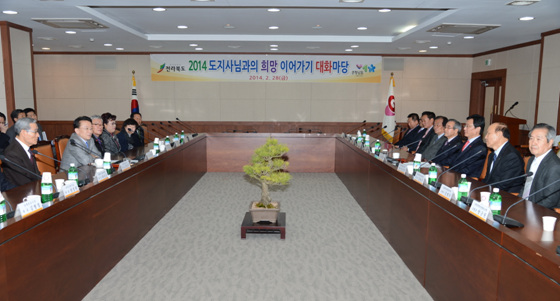 방문방향은 2014 희망투어 대화마당 '멀리 가려면 함께 가라'의 주제로 간담을 갖고 지역현안을 비롯해 민생생활 현장 속에서 정책 수요와 애로를 청취, 새내기공무원 지역리더, 도정협력자 및 최일선 정책전달자와의 공감 소통을 통해 도 발전 역량 결집으로 무게가 실렸다.