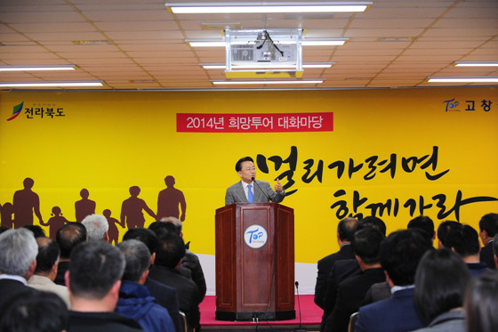 김완주 전북도지사가 17일 “2014 희망투어 대화마당”을 위해 고창군을 방문했다.