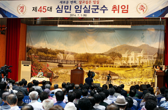 민선 6기를 맞이하는 제45대 심민 임실군수 취임식이 1일 임실군민회관에서 각급 기관단체장 및 내외귀빈, 군민 등 2천여명이 참석한 가운데 검소하고 내실 있게 진행됐다.