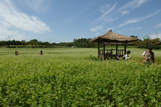 봄엔 싱싱한 생명력으로 가득한 초록물결을 선보였던 100ha의 넓은 청보리 밭에 선선한 가을바람과 함께 풍성하고 새하얀 메밀꽃이 찾아왔다.