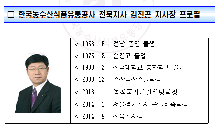 김진곤(56) 한국농수산식품유통공사(aT)전북지사장이 지난 5일자로취임했다.
