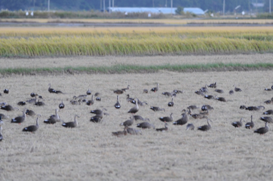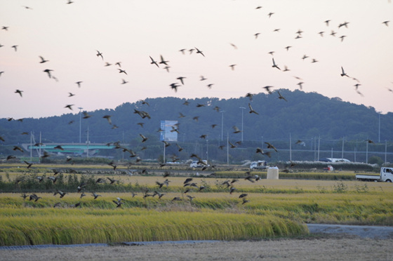 지난 10월 15일경부터 나포면 십자들 지역에 흰뺨검둥오리(영명 : Spot-biiled Duck) 수천 개체가 확인되기 시작했으며, 그 가운데 해질 무렵 수 백마리의 가창오리가 소규모 군무를 펼치고 있다.
