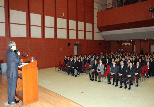 서 총장은 “매사에 서로 힘을 합쳐야 큰 결실을 맺을 수 있다는 줄탁동시(啐啄同時)라는 말처럼 2010년 구성원들의 힘을 합하여 우리의 해로 만들어 나가자”고 말했다./엄범희 기자