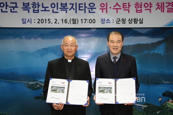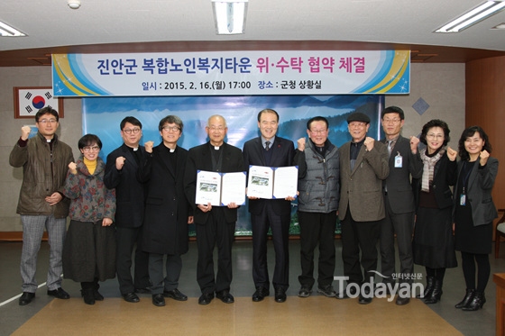 진안군은 지난 16일 사회복지법인 전주카톨릭사회복지회와 진안군복합노인복지타운 민간위탁을 위한 위수탁협약식을 가졌다.