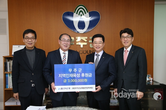 전북은행이 지난 17일 (재)무주군교육발전장학재단에 장학금 300만 원 을 기탁했다.