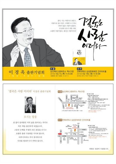 출판기념회는 서울 남산 제이그랜하우스 젝시가든에서 5월 7일 오후 6시에 열리며, 이어 5월 19일 오후 6시 전북대학교 삼성문화회관 건지아트홀에서 각각 열린다.