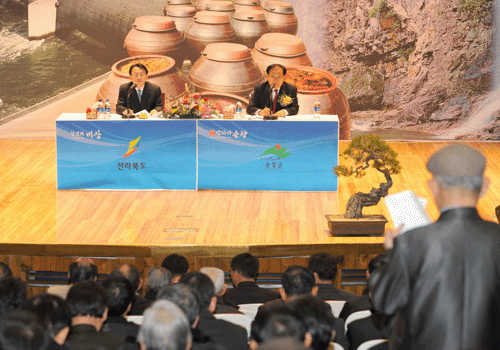 김완주 지사는 26일 ‘희망을 이야기하는 공감마당’ 도민과의 대화차 순창을 방문, 이같이 말하고 “한국에서 최고 브랜드로 자리매김한 순창 고추장을 김치를 능가하는 수출 효자품목으로 육성해 세계 시장을 석권하는데 모든 힘을 모으자”고 강조했다.