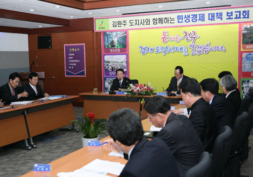 김지사는 또 “희망근로사업이 지난해와 비교해 1/3로 줄어, 전주시는 공공근로사업으로 대체하고 있지만, 희망근로의 경우 월 95만원, 공공근로의 경우 월 20만원으로 현격한 차이가 나는 만큼 사회적 기업으로 돌파구를 찾는 것이 좋을 것”이라며 “특히 SK그룹 등 사회적 차원에서 확산할 계획을 가지고 있어 대기업들과 함께 협력해 일자리를 많이 창출해 주길 바란다”고 역설했다./엄범희 기자
